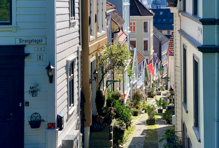 Innflyging Gul og svart vingler den døsig innover smauet over brosteinene langs med de stengte butikkene ...